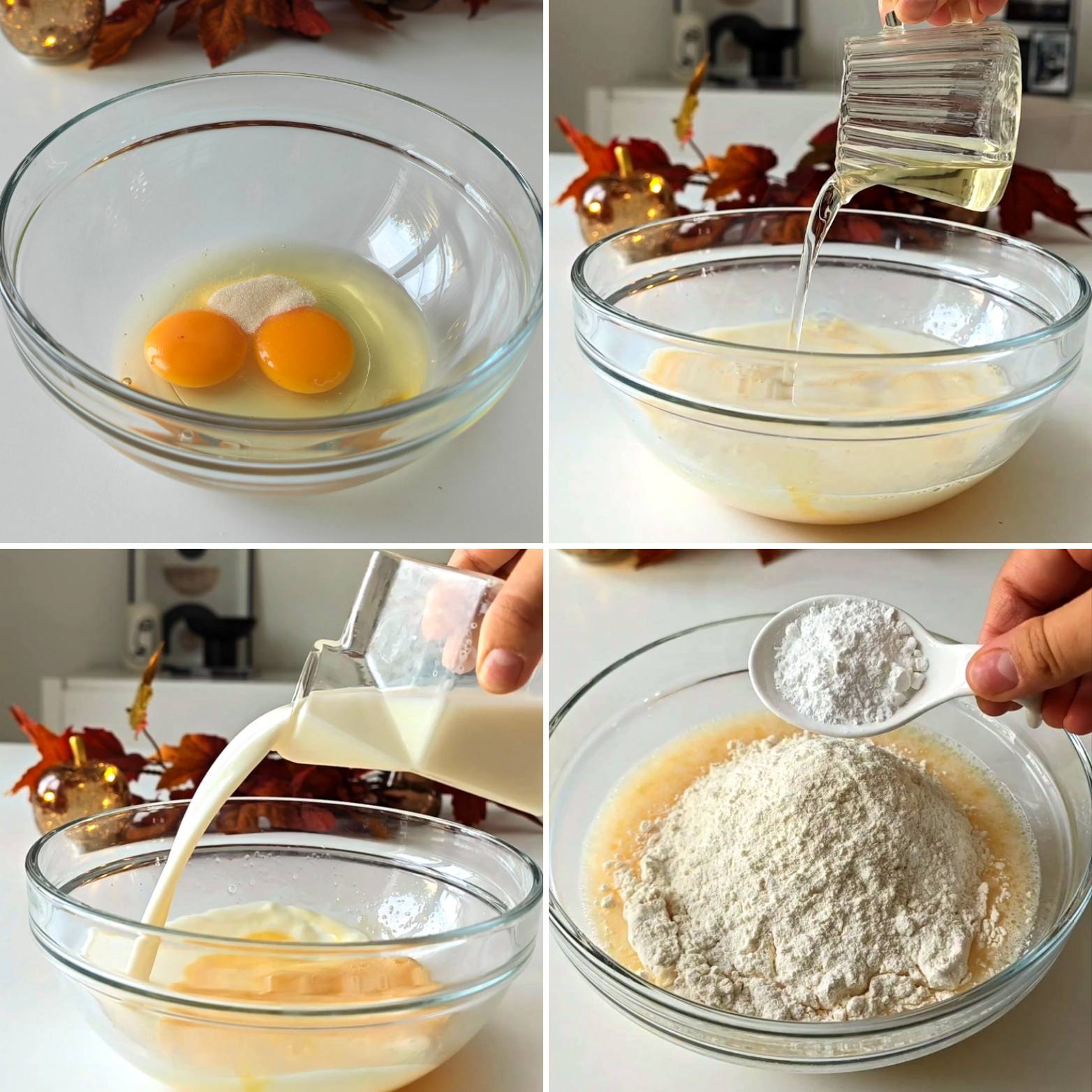 1. Dans un saladier, mélangez les œufs et le sucre vanillé au fouet à la main