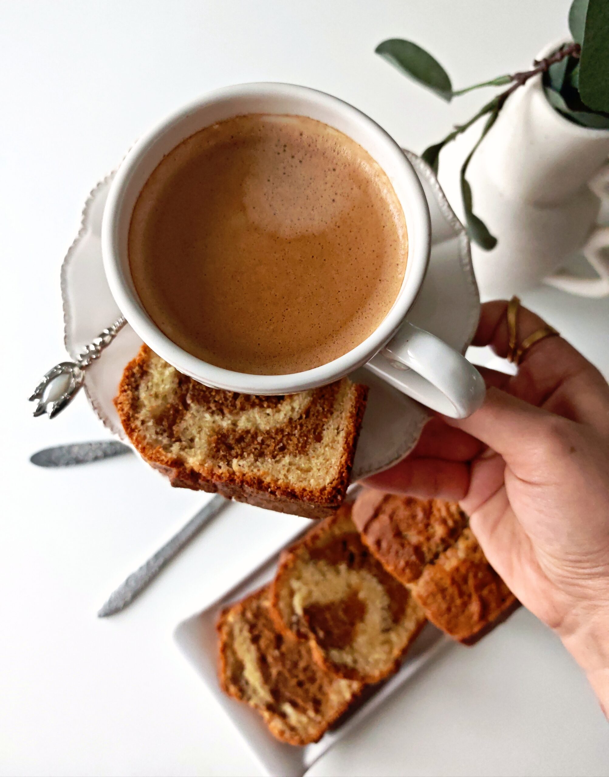 Un cake ultra moelleux, bien parfumé, avec de subtiles notes de café qui viennent twister la douceur de la vanille