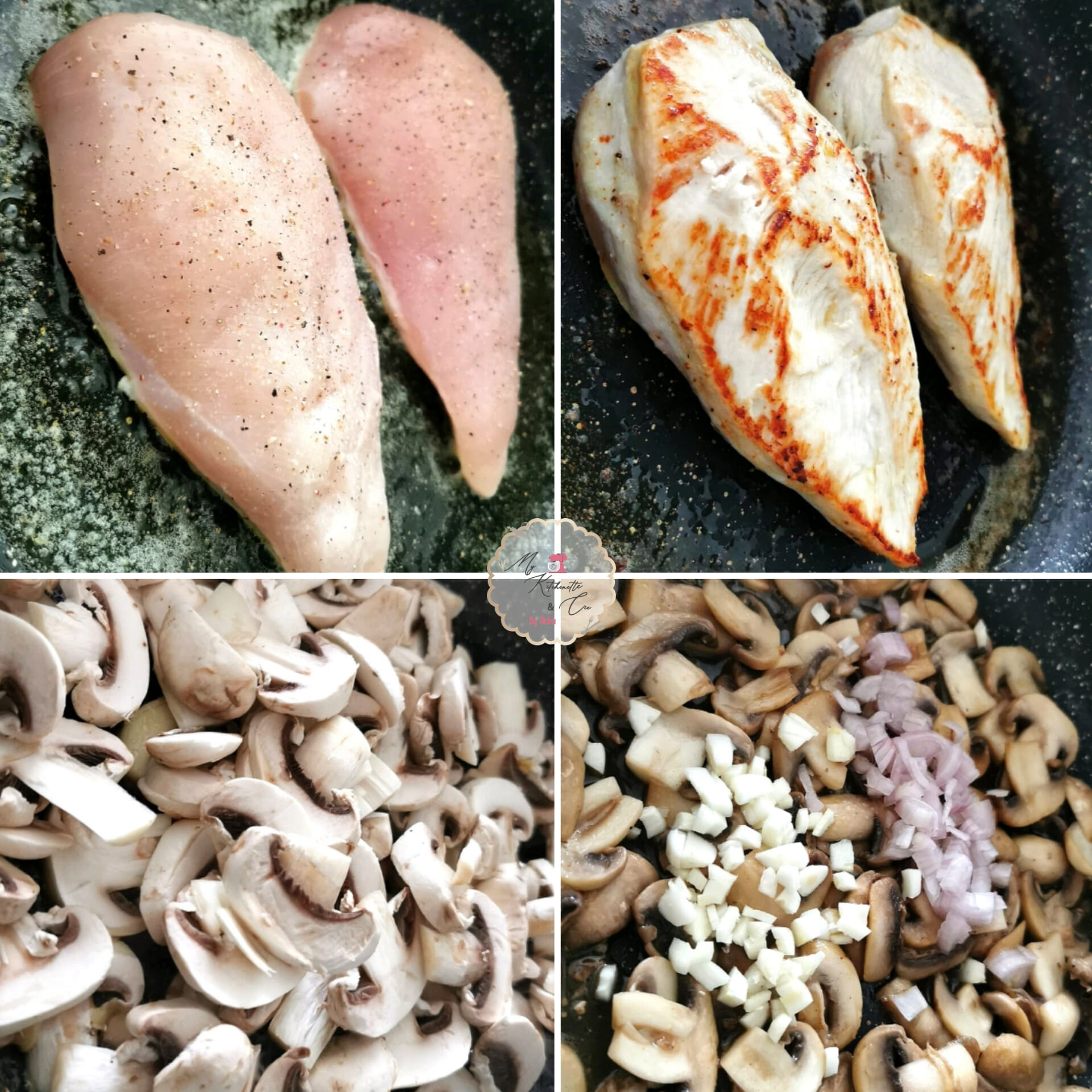 1.Coupez les champignons en tranches, l’échalote finement et hachez l’ail