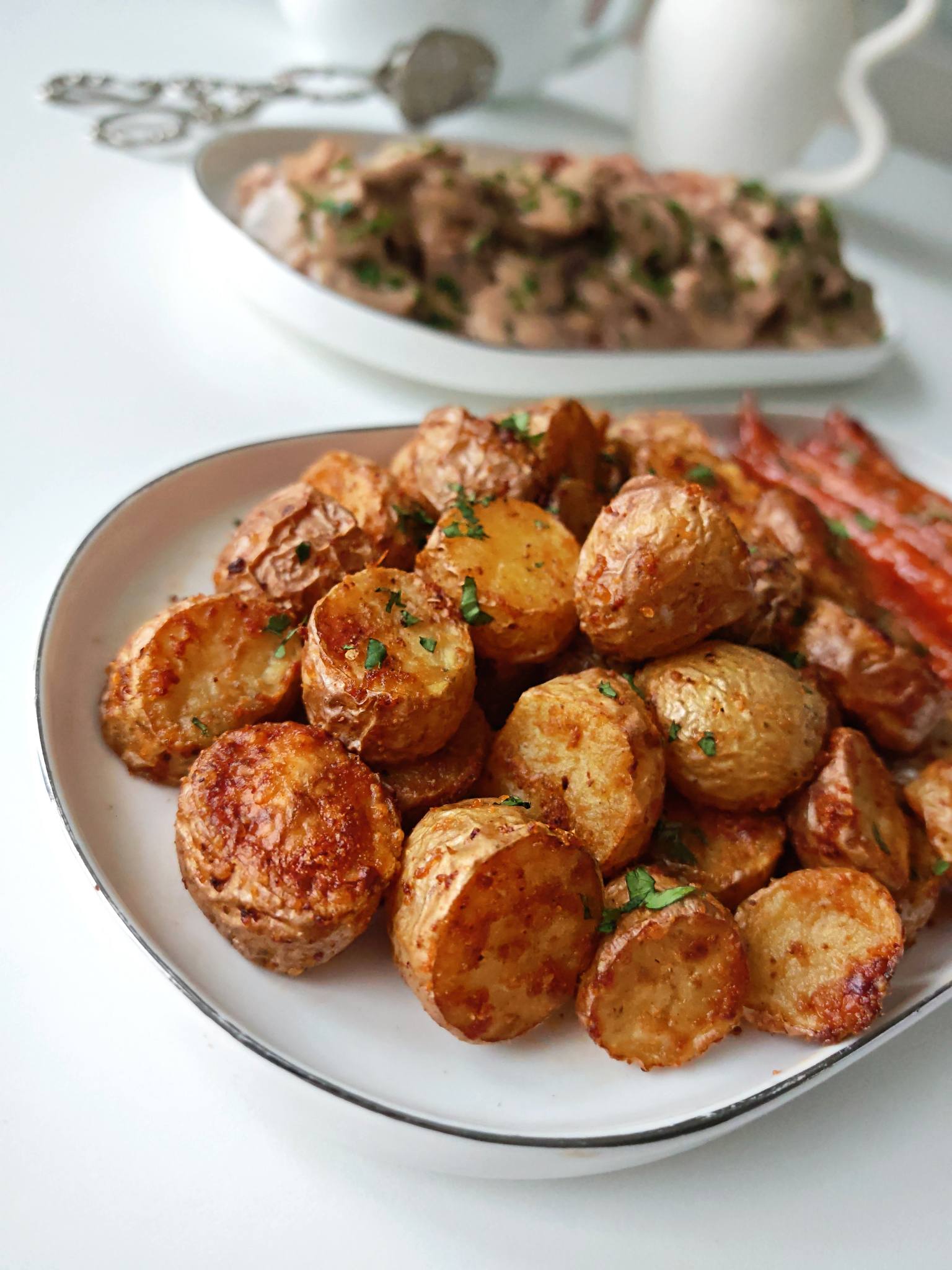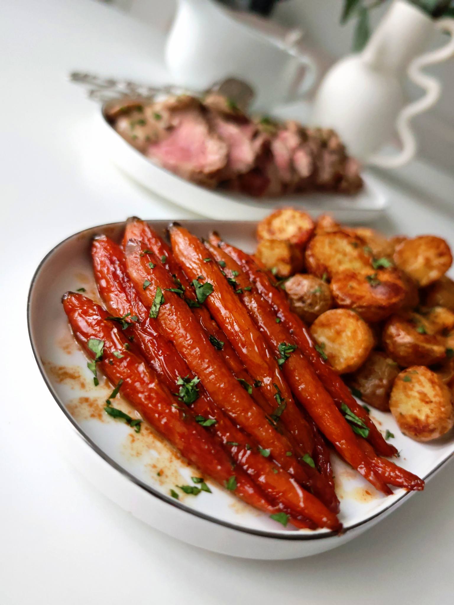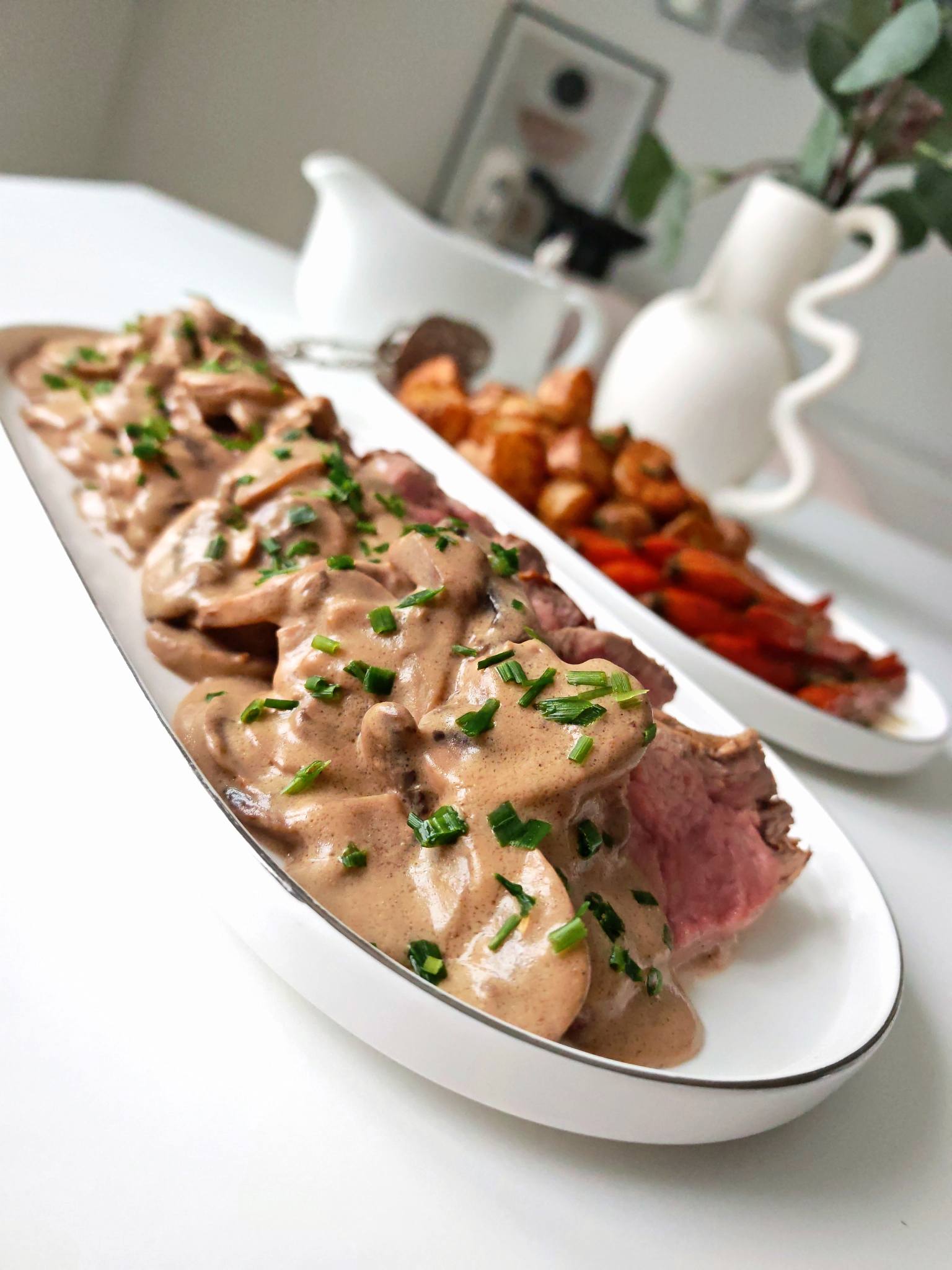 Un filet mignon de veau fondant, rosé à cœur, sublimé par une sauce aux champignons onctueuse, avec grenailles rôties au parmesan et carottes glacées fondantes.. Le plat parfait quand on reçoit et qu’on veut en mettre plein les yeux sans passer la journée en cuisine