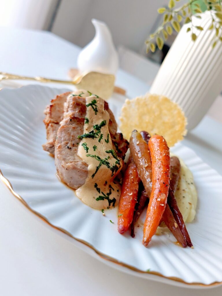 Purée onctueuse, veau tendre, sauce gourmande, carottes caramélisées façon Robuchon, parmesan croustillant.. Qui a dit qu’on devait sortir pour manger comme au resto ?