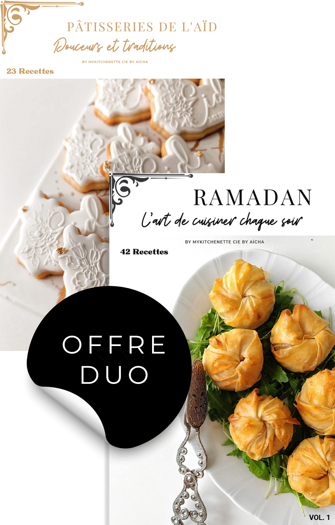 Découvrez le Pack Spécial Ramadan & Pâtisseries de l’Aïd : vos deux ebooks réunis pour vous accompagner tout au long du mois et ce jusqu’aux tables de fête !
